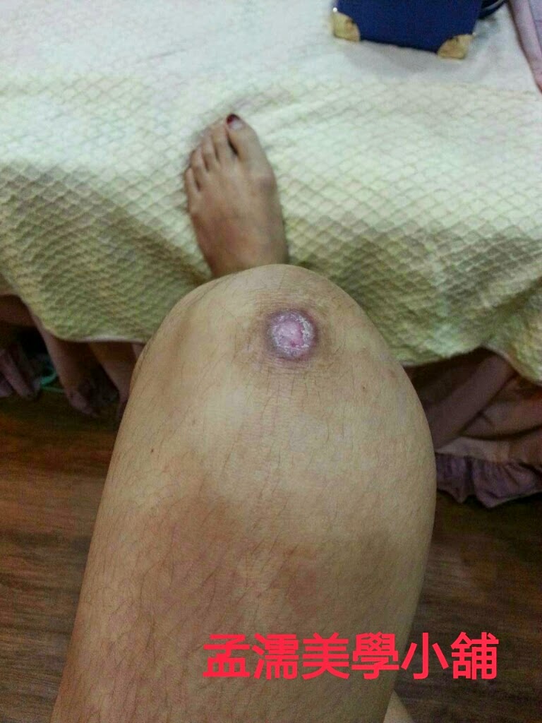 (以下照片為腳部外傷修護不完全,重新破壞產生的紅腫水泡)